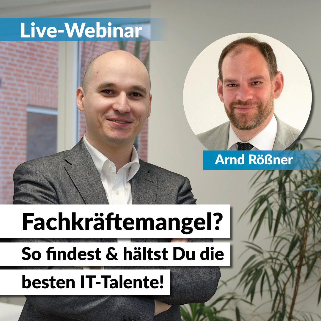 Im Live-Webinar am 21.04.2026 um 16 Uhr geben drei IT-Unternehmer tiefe Einblicke in reale Unternehmens(ver)käufe aus 2026. Du erfährst, woran IT-Unternehmen in Transaktionen scheitern, was Verkaufsfähigkeit wirklich bedeutet – und wie Du Dich frühzeitig richtig aufstellst, ohne unter Druck entscheiden zu müssen.